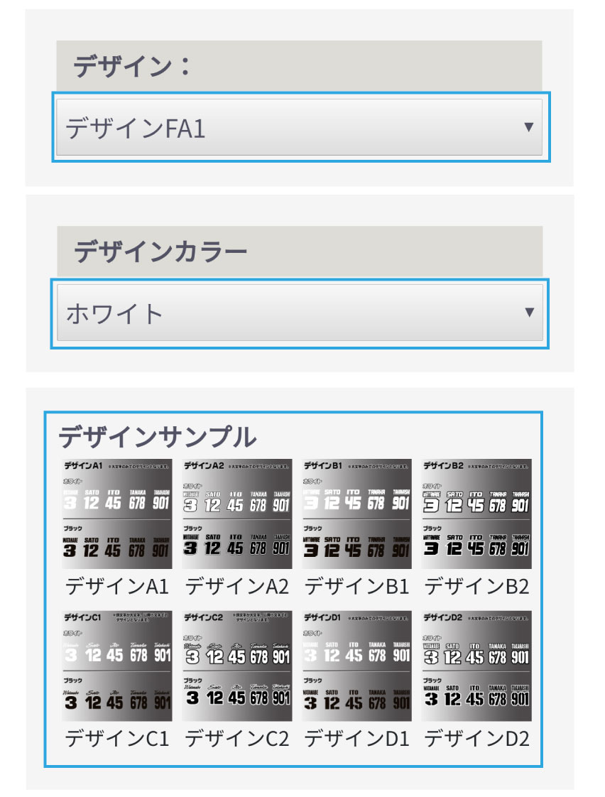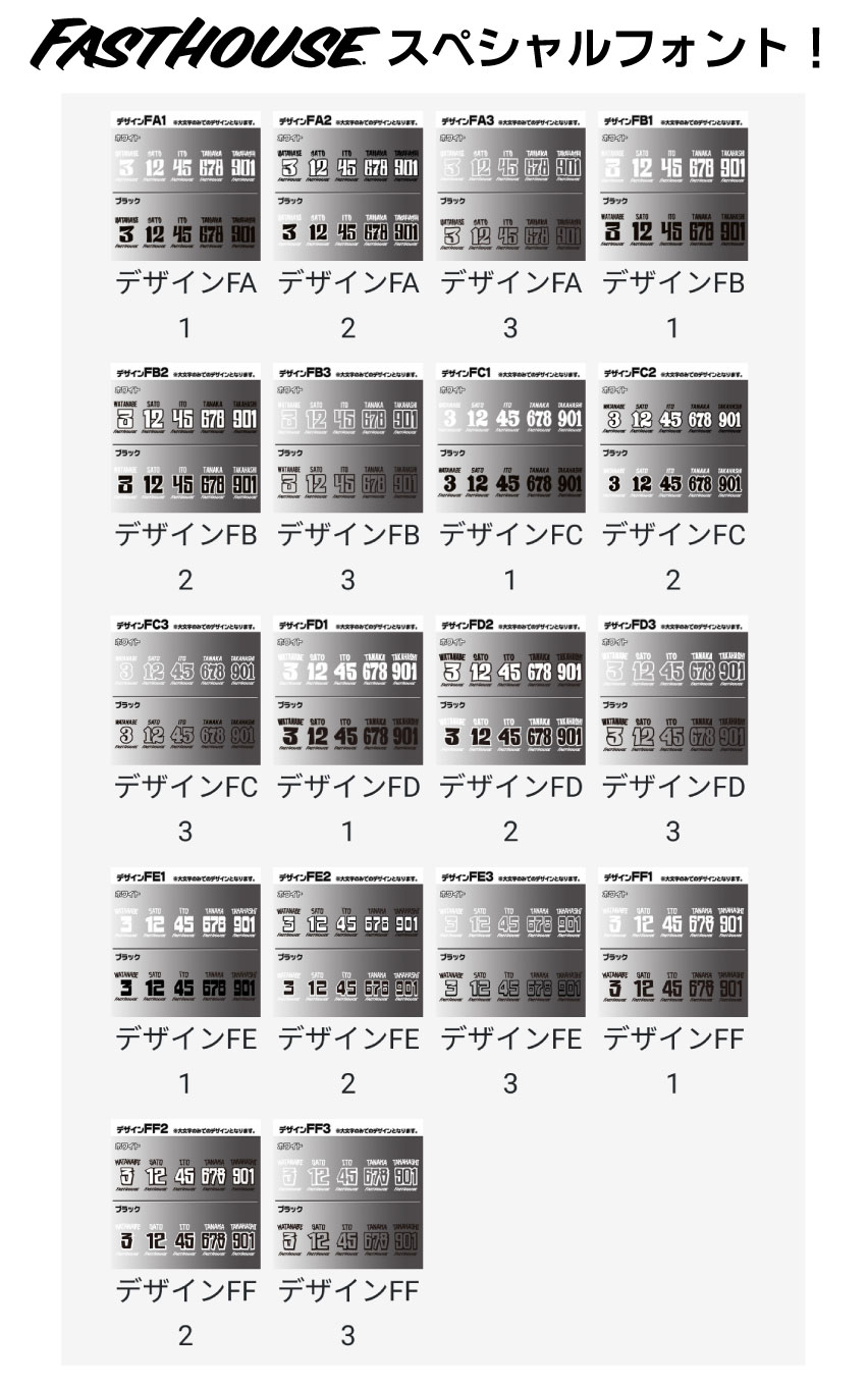 ダートバイクプラスのカスタムジャージプリントはMXウェアーメーカーが契約ライダーのジャージにネームをプリントする際に採用している素材・製法で制作しています。ネーム・ゼッケンのデザインは、専任デザイナーがジャージのサイズやバランスに応じてサンプルパターンと同じイメージになるようにデザインいたします。