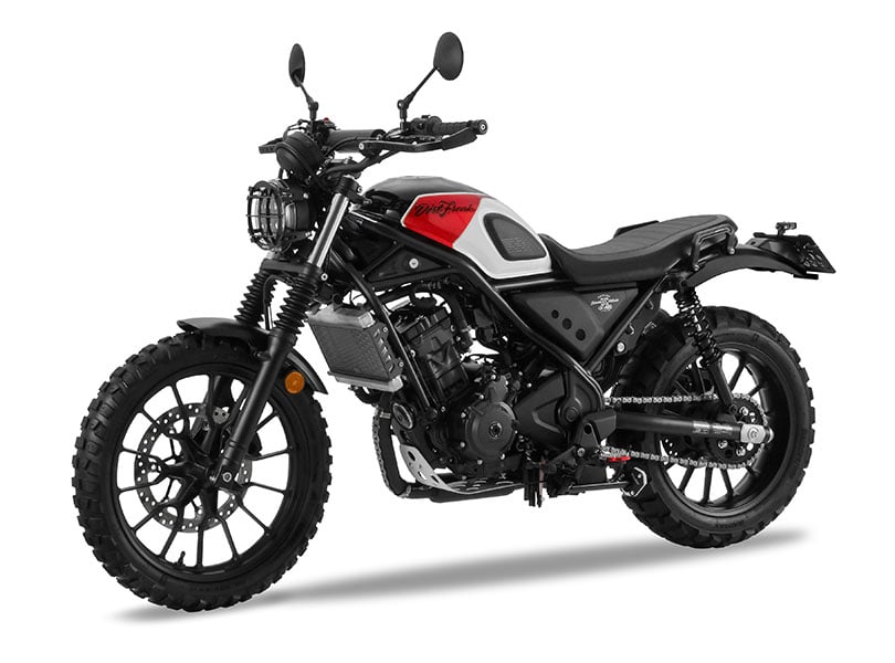 ワイドアップベンドで走行安定性を高めたスクランブラースタイルのハンドルバー。