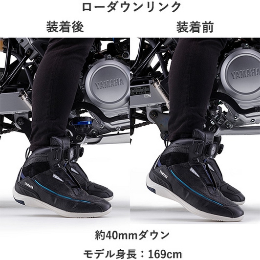 リアサスペンションのリンク長を変更し、シート高を約40mm下げるキット 停車時の足つき向上に貢献します。