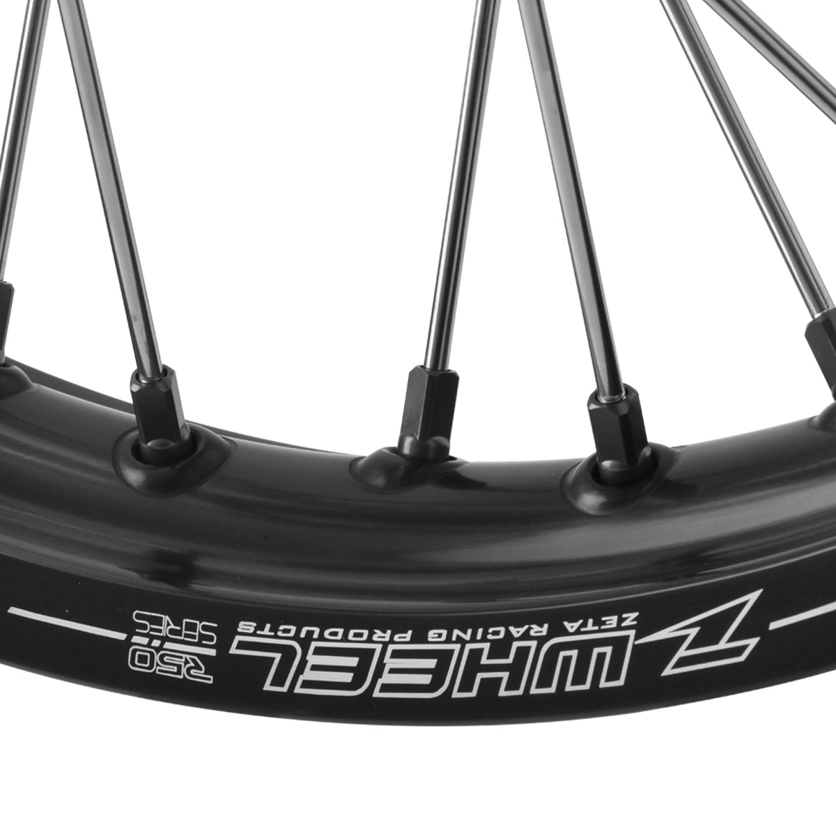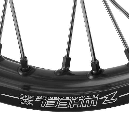 高強度レーススペックリムと軽量アルミニップルに変更することで、純正を超えるジャンプ耐性を実現。