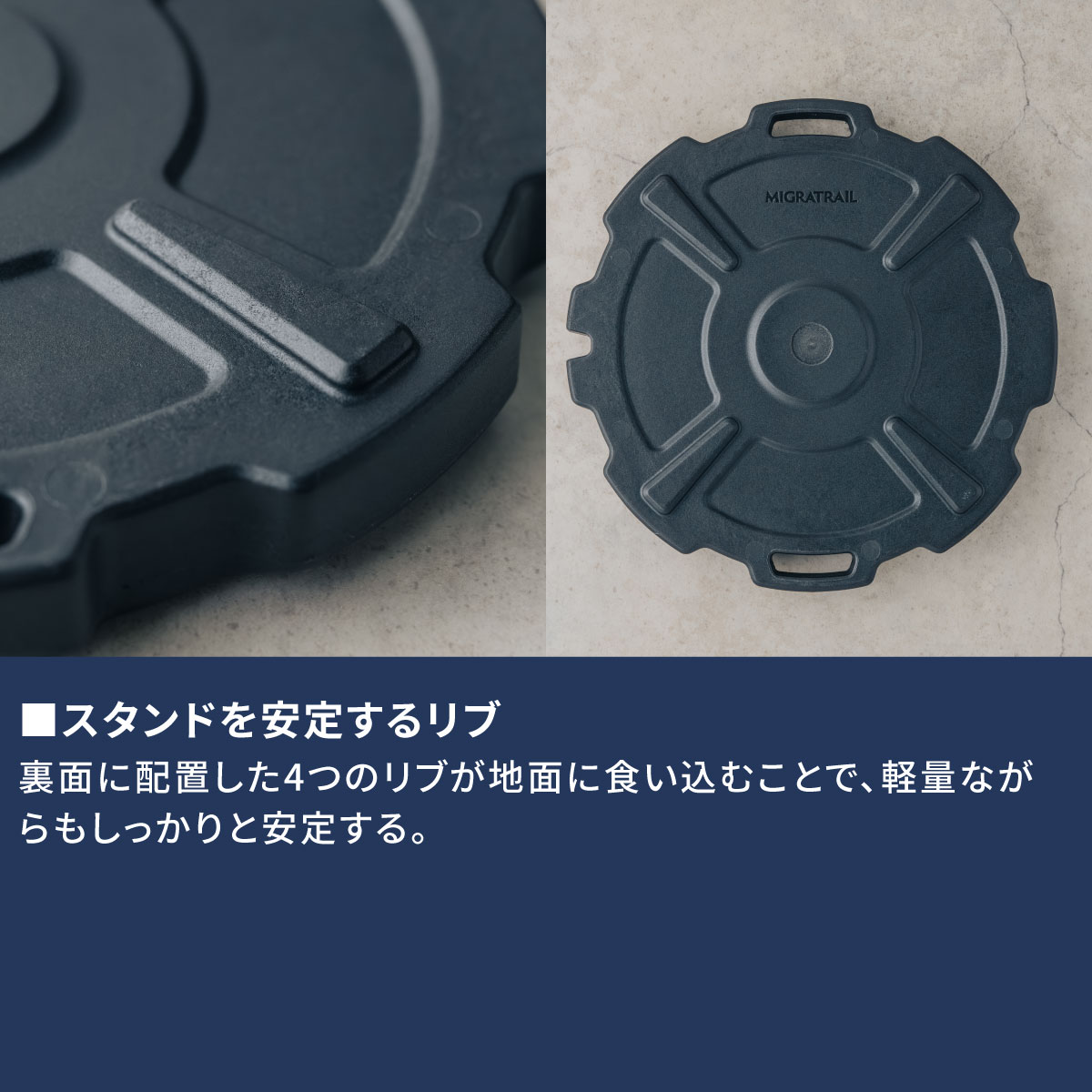 劣化しにくく、水洗いもできる高強度樹脂を採用。薪と相性の良い切り株をモチーフにしたデザイン。