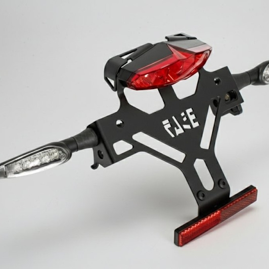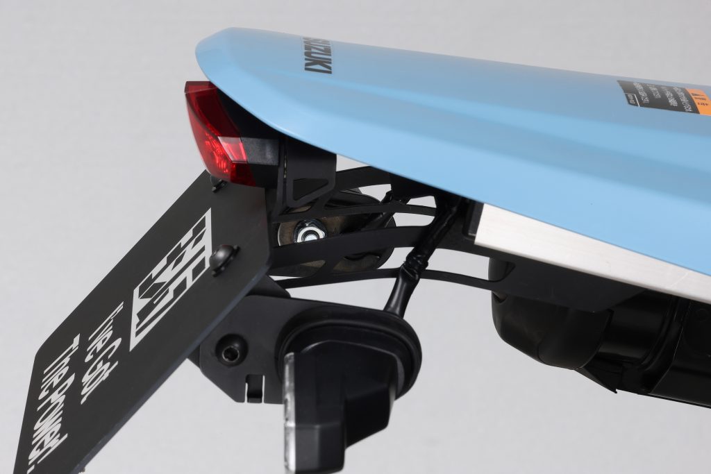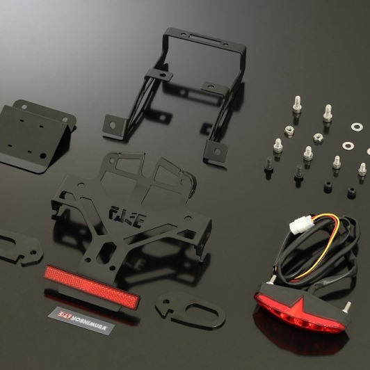 DR-Z4S/SMのスタイリングを引き締めるフェンダーレスキットです。 メインブラケットには、高強度かつ耐腐食性に優れたステンレス材を採用。剛性を損なうことなく小型化・肉抜き加工を施し、リア周りの軽量化に大きく貢献します。