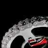 オフロード耐久レース「エンデューロ」ユーザーをターゲットに、スチール製の高耐久性、新設計のライトニングホール形状を採用し、弊社従来製品から約400g強の軽量化を実現(セルフクリーニング溝も新設)。更に、特徴的な色合いで目を引く「陽極亜鉛プレーティング処理」を施し、存在感もアピール。歯数は、実戦を考慮