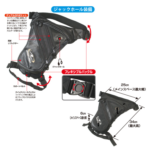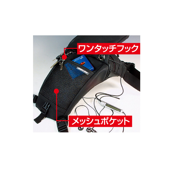 ウエストサイドに装着できるライディング重視のガンホルスタータイプウエストバッグ。