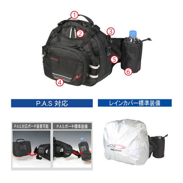 ザックでは大きすぎ、ウエストバッグでは小さすぎるそんな時にベストサイズなのがこのヒップバッグ。 容量11リットルと抜群の収納力を誇るメインスペース、フロントに別室ポケットがあり、荷物の仕分けもバッチリ。抜群のホールド感をサポートする左右ウエストに、エアーベントダクトを配置し、身体との密着面を強制空冷することで真夏のツーリングも快適。ロングツーリングではもちろんのこと、デイリーユースでもこれひとつあればすべて収納できるビッグサイズは魅力的です。