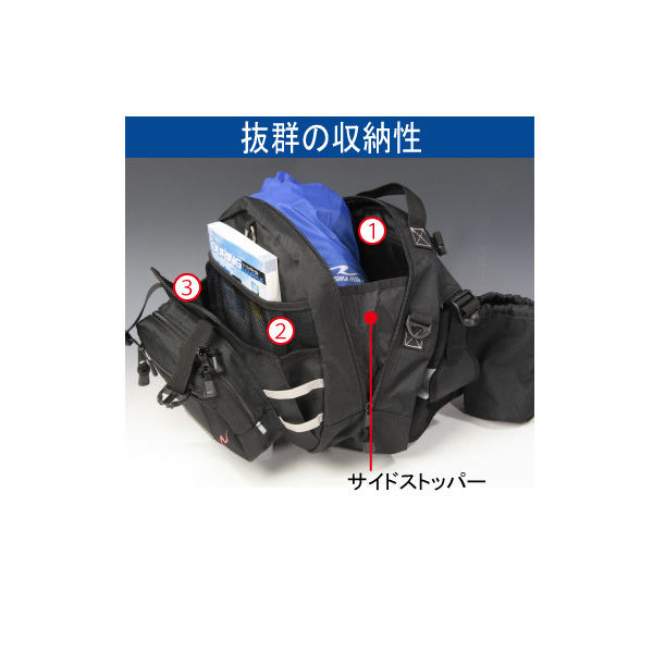 8箇所の収納スペースでツーリングに適した大容量11Lのヒップバッグ