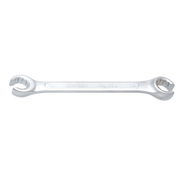 油圧ブレーキのフレアナット等の締緩作業に便利なオープンリングレンチ。