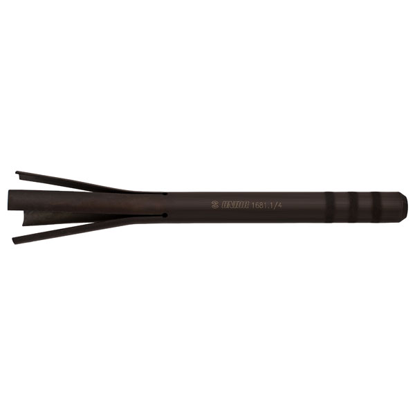 ステアリングヘッドのベアリングレースを取り外す特殊工具。工具本体の広がっていない部分からステアリングヘッドに挿入し、広がっている部分をベアリングレースに引っ掛け、本体のヘッド部分を叩いて取り除く。