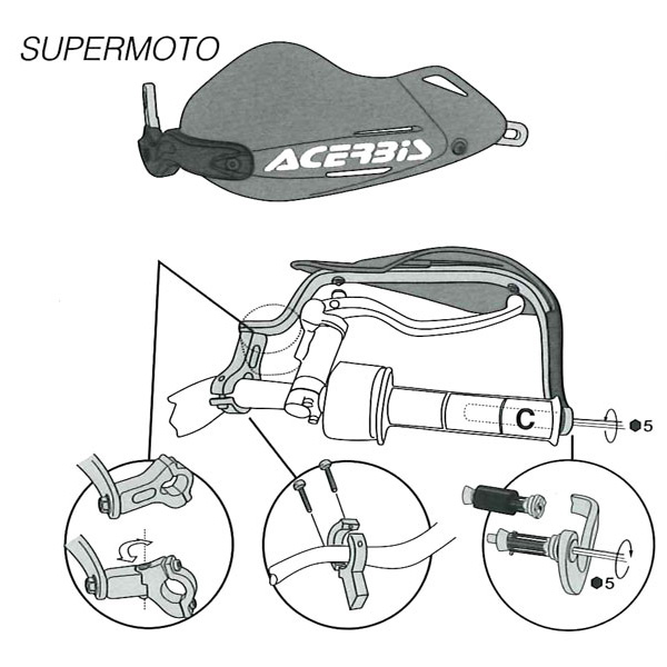ラジアルマスターシリンダーにも干渉しないアルミフレームガードを採用したハンドガード。エンド部にはスライダー付で転倒時のダメージを軽減。マウントKITが標準装備です。