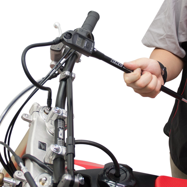 ロングバレルのシリンダーによって、大容量のモトクロッサーのフロントフォークでも短時間で注入可能。