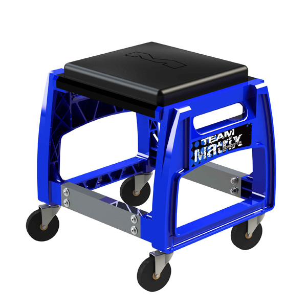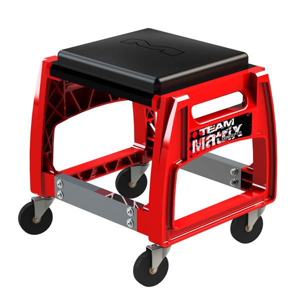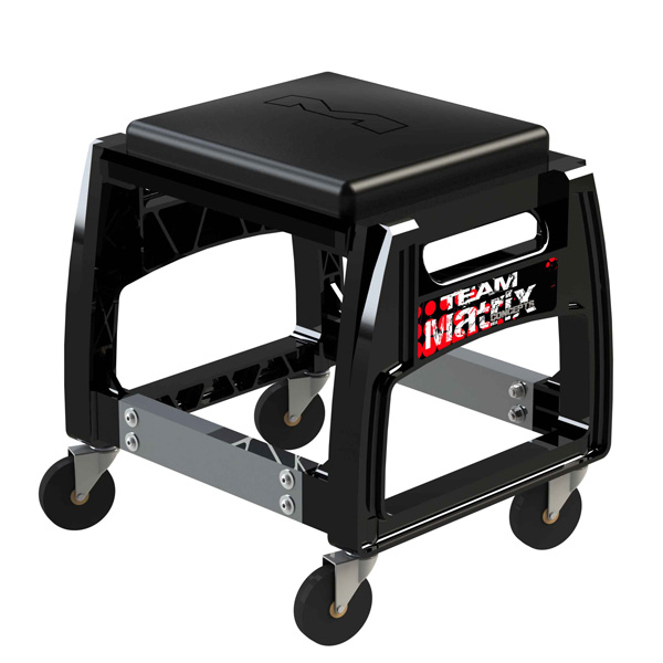 MATRIXスタンドに、バイクを載せて作業することを前提に設計された作業イス。高さや工具の置き場等、使い勝手の良さは専用設計ならではです。座面は取り外しができ、交換が可能。