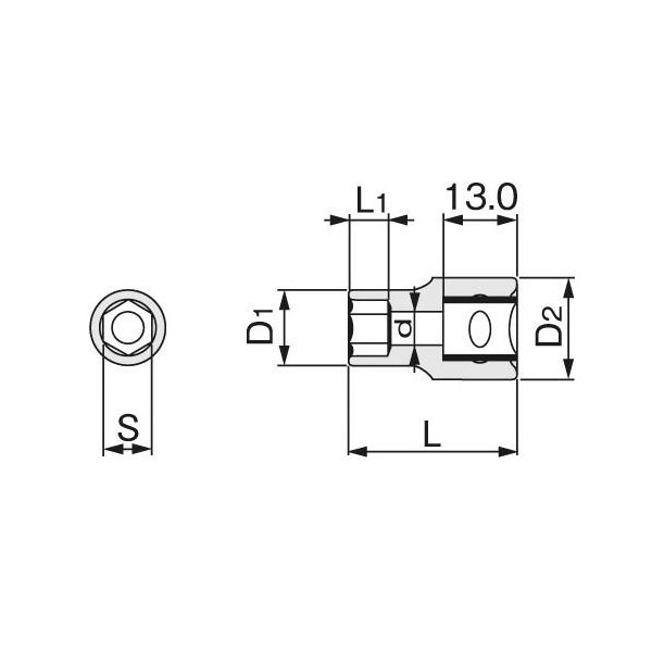 バイク整備での使用頻度が最も高い差込角9.5mm(3/8インチ)のスタンダードソケット。口径形状は強度・耐久性に優れ、ボルト・ナットの角を傷めにくい6角タイプ。