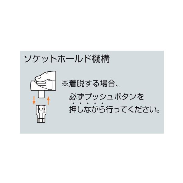 ソケットの着脱が容易で、作業時には外れにくいソケットホールド機構付。