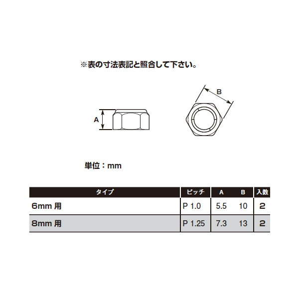 ※素材の性質上、焼き付きを起こし易い為、グリスまたは焼き付き防止剤をネジ山に塗布してからご使用下さい。又、ロック部からボルトの突き出し長を1?5mm程度にし、再使用する際にはボルト・ナットのネジ山、ロック部が傷んでいないか確認した上でご使用下さい。