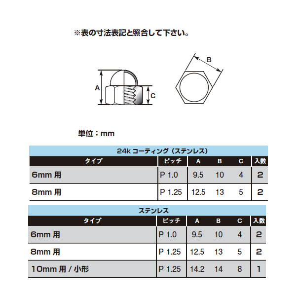 10mm用(小型)は2面幅が一般のナットに比べて小さいタイプです。