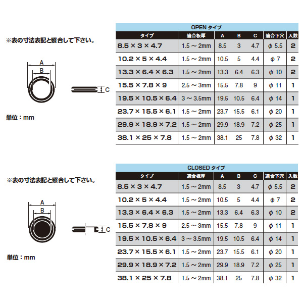 ※取り付け穴加工の際は下穴のサイズ、板厚をよく確認した上で加工して下さい。