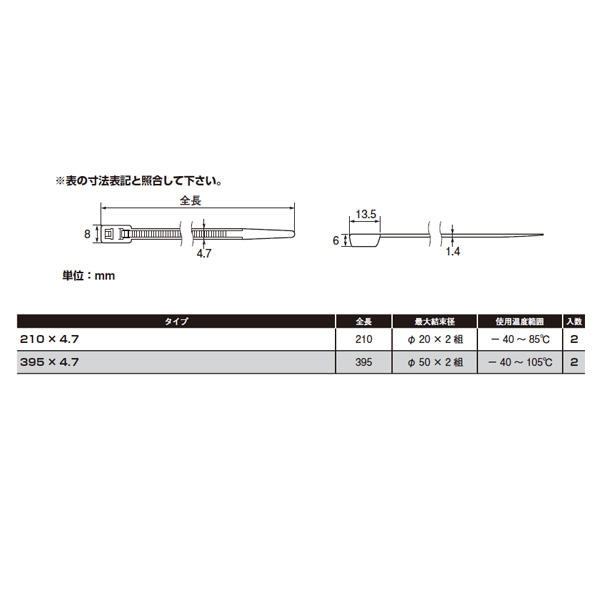 平行する二系統のハーネス束を 8 の字形状に束ねることが可能。耐候タイプ。(2本)