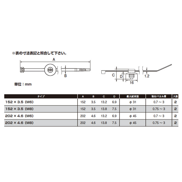 固定時に水やホコリの浸入を防ぐことが出来、メネジにも取り付け可能なファーツリーマウント付きタイ。(2本入り)