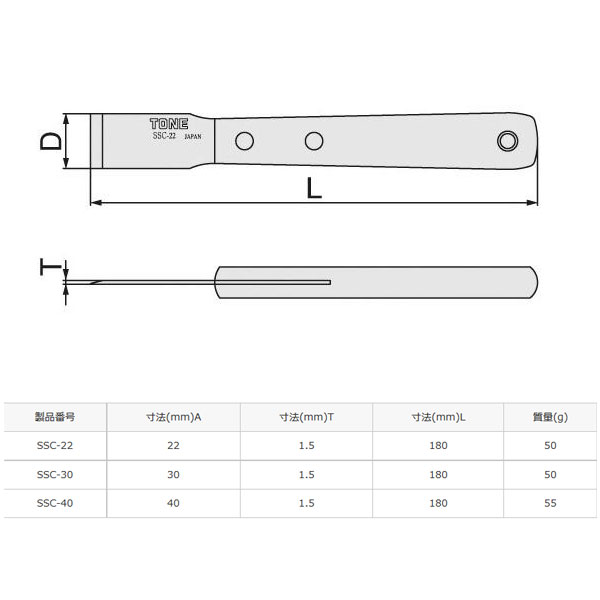 各種ガスケット類の剥離や表面の仕上げ作業に使用します。刃部全長が短く、しなりにくいため、細かい作業に最適です。