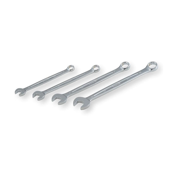 スパナのスピードとめがねレンチの強さを兼ね備えているのがコンビネーションスパナです。仮締めをスパナ側で、本締めをめがね側でというように1本で2役の機能工具です。モデルチェンジで、さらに使いやすくなった手に馴染む柔らかい曲線デザインを採用しました。