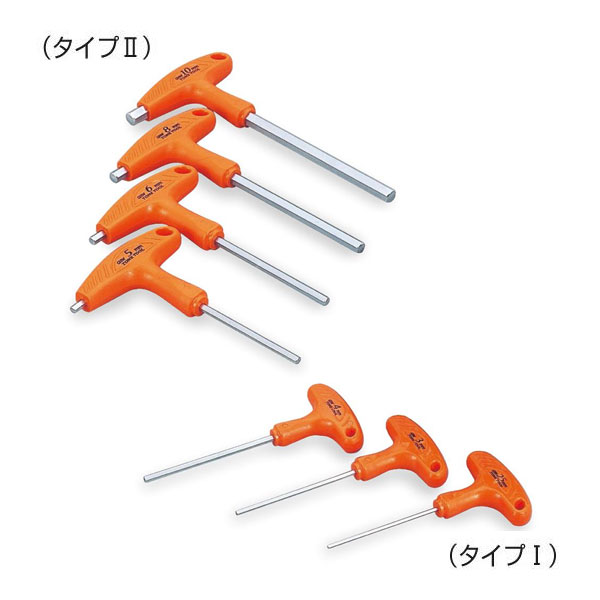 T形樹脂グリップでフィット感抜群!!パワフルな出力が可能です。グリップ部にはすべり止め処理を施しています。5~10mmのサイズにはグリップの端に同サイズの六角棒を配置しています。六角軸は上品なつや消しの硬質クロムめっき仕上げです。
