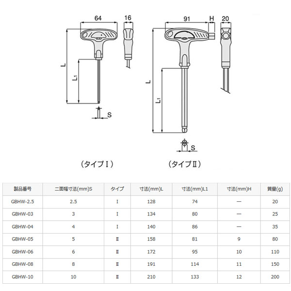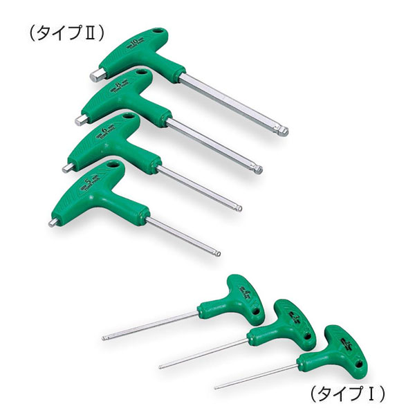 T形樹脂グリップでフィット感抜群!!パワフルな出力が可能です。グリップ部にはすべり止め処理を施しています。5~10mmのサイズにはグリップの端に同サイズの六角棒を配置しています。六角軸は上品なつや消しの硬質クロムめっき仕上げです。