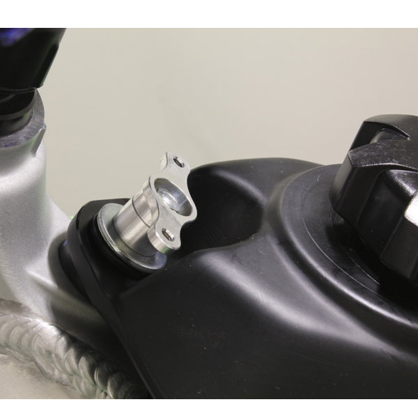 ガソリンタンクを止めるボルトを使用し、共締めして取り付けるタイプ。(取り付け穴径 6.4mm)