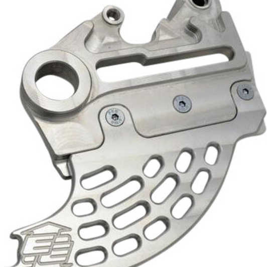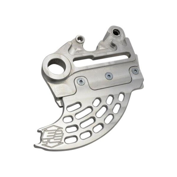 ブレーキキャリヤー全体を交換するタイプのディスクプロテクター。強度が高くローターやキャリパーを確実に保護。