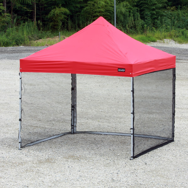 ユニットキャノピー専用の横幕。生地は目の細かいメッシュタイプ。夏場の暑い時期などに最適で、通気性が良く、テント内に熱気がたまるのを防ぐ。横幕の取り付けはベルクロを採用し、連結部はファスナーのため、らくらく・簡単に設営可能。