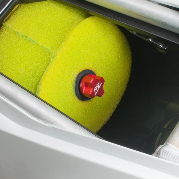 アルミ合金をCNC加工した後に、アルマイト処理を施す。ボルト頭部は、掴みやすく素早く回せる為、整備性が向上する。ボルトシャフトには錆に強く耐久性のあるステンレス鋼を採用。
