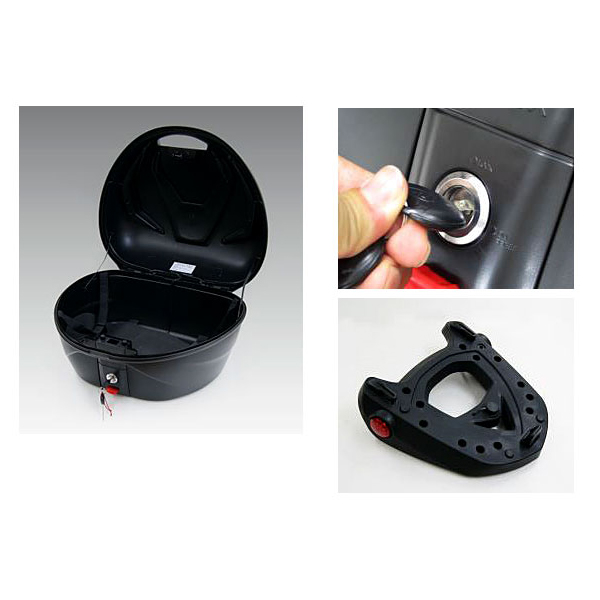 30Lだと小さいけど、50Lは大きすぎる…そんな方が丁度良いと感じる40LBOXの登場です!!エッジの効いたスタイリッシュなデザインで違和感なく多くの車体にマッチします。付属のベースをキャリア等に固定して使用します。内容物が動かないようにベルトを装備。