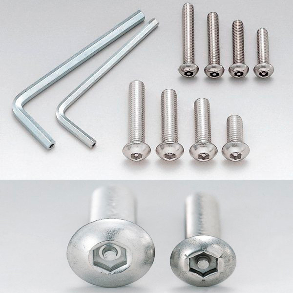 盗難防止用にイジリ止めピンをヘキサゴンホールに施した優れもの。専用ヘックスレンチをSET、これで高価なアフターパーツも安心です。ステンレス製2個入り