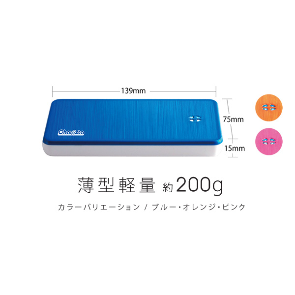 待望のコンパクトサイズが登場!約200gの薄型軽量のモバイルバッテリーです。