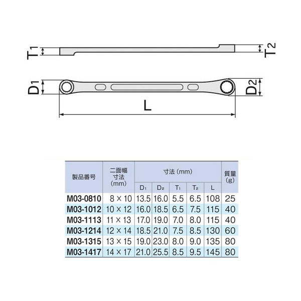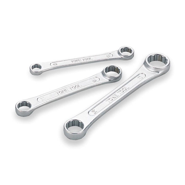 高さ制限のある狭い箇所や作業スペースが狭い箇所に最適です。めがね部は12角なので、ボルト・ナットに対し容易にはめ合わせができます。
