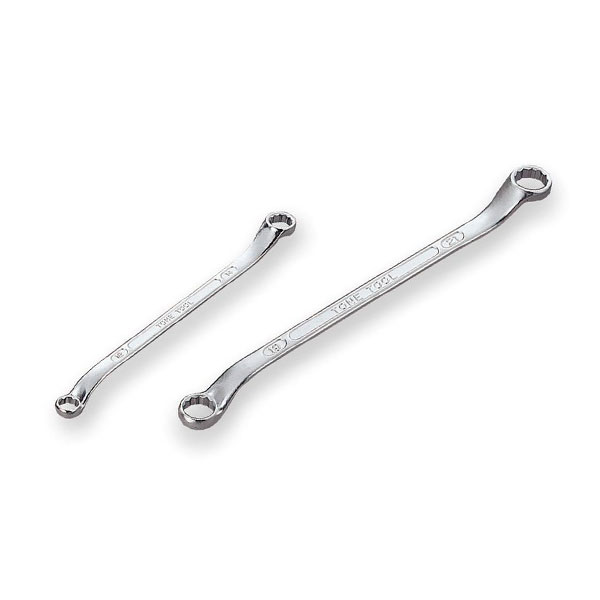 従来のロングめがねレンチ(45゜)より、柄部の高さが低いため周辺の障害物を避けて作業ができます。めがね部がリング状になっていますので、ボルト・ナットから外れにくく周囲均等に荷重を受けるため、強力で確実に締付けることができます。