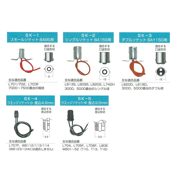 カスタム用の電球ソケットです。自由な発想でカスタムにご利用下さい。電球、口金形状にあわせて5種類のソケットがあります。