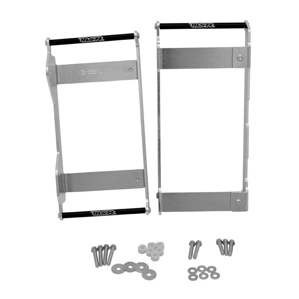 気流を妨げずにラジエターの変形や破損から守る、軽量・高強度のアルミ製ラジエターガード。