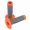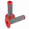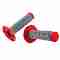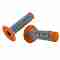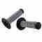 異なる硬度素材で成型されたデュアルコンパウンドレーシンググリップ。グレー部分は衝撃吸収性を高めるソフトコンパウンド、カラー部分は耐久性の高い硬めのコンパウンドによって、より長いグリップの寿命を提供。アンチスリップダイヤモンドパターンとツイストワッフルパターンによって握りやすく、滑りずらい。3ヶ所にグルーブを配置し、ワイヤリングすることでグリップのねじれを防ぐ。バーエンドプラグを取付る等、カット加工が必要な場合に便利な、カットラインを設ける。