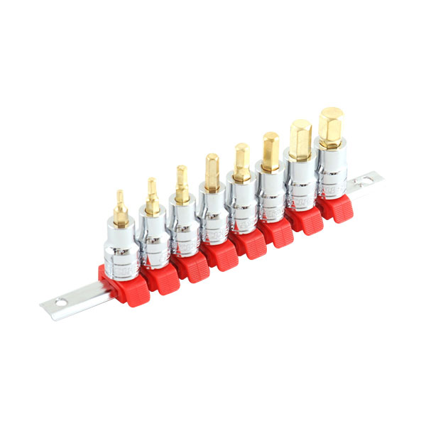 新型ソケットホルダーを採用しておりますので、ワンタッチ操作で簡単にソケットを取り外せます。新型ソケットホルダーで、確実にソケットを取り付けられます。六角穴付きボルトに対応しております。素材には優れた強度・耐衝撃性を持つクロームバナジウム鋼を使用しております。