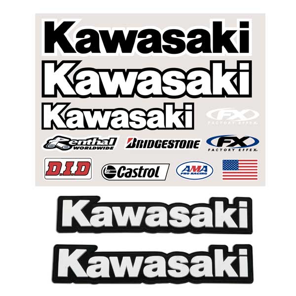 家庭用アイロンを使って簡単にモトクロスジャージへプリントできるアイロンロゴシートと、モトクロスパンツの太もも部に縫いつける頑丈なゴム製のレッグロゴのセット。