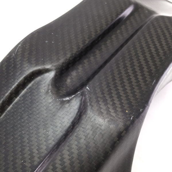 カーボン製モタードフェンダー。表面の細かいキズや織目が不均一である為、塗装前提でご使用下さい。