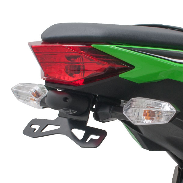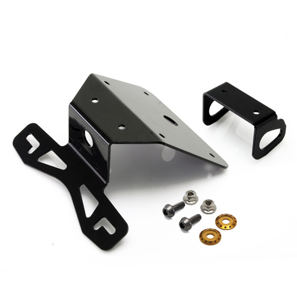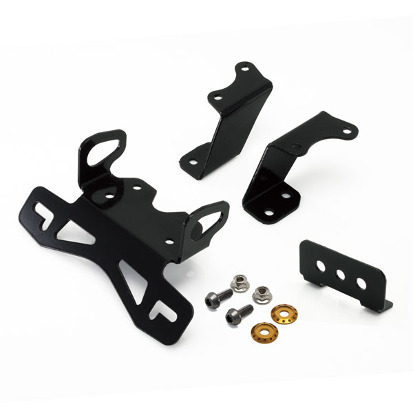 純正ナンバー灯・純正ウィンカーが取り付け可能なボルトオン設計のフェンダーレスキット。ナンバー角度やウィンカー位置などをポイントにデザインし、スッキリとしたリヤビューを再現。耐久性が高く、剛性のあるスチール材を採用し、ブラック塗装処理を施す。取り付けに必要なボルト/ナットやナンバープレート取り付けボルト/ナット/アルミワッシャーが付属。