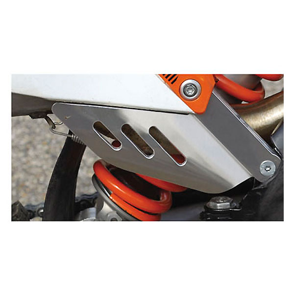 マフラーの熱からブーツやパンツ等の破損や火傷を防ぐアルミ製のガード。