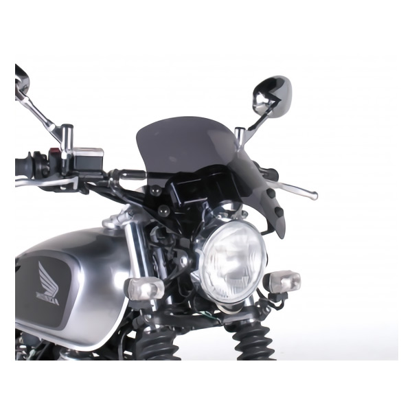 体に当たる走行風を低減させるメーターバイザーです。スモークバイザーを採用。○ポリカーボネイト製○ステー付属