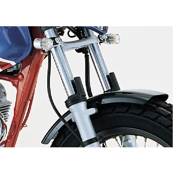 フロントフォークのインナーチューブを飛び石や汚れから守るフォークガードです。各種取りそろえていますので、フォークのドレスアップにも最適です。タイラップで固定する汎用タイプ、ミニバイクからビッグバイクまで装着可能。○2ヶ1SET○材質:ポリプロピレン○汎用(φ40~70まで対応)