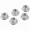 フランジ付ロックナットのセット。高強度チタンを使用するため、6角の2面幅をワンサイズ小さくすることが可能で、さらなる軽量化を実現。YZF-R1の純正と比較した場合、純正ナットが1個あたり約14gに対して、ZETA製品は約5g。合計 6個使用するため、その差は実に54gになる。