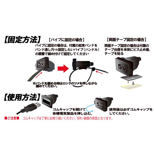 ※ソケットを使用しない時は必ずゴムキャップを締めてください。(ホコリやゴミ等が侵入し、車体側電装系トラブルの原因や火災に繋がる恐れがあります。)