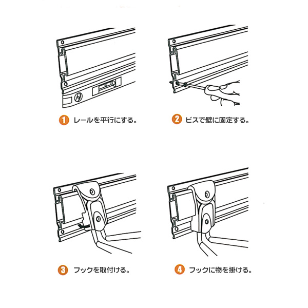 ・ 専用フックはレールへ簡単に取付可能