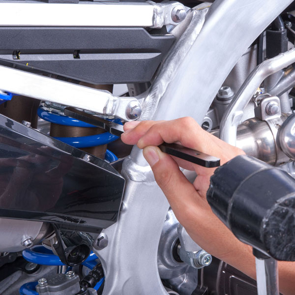 リヤショックのプリロード調整をするための専用工具。車体からリヤショックを取り外すことなく作業ができる。スチール製。