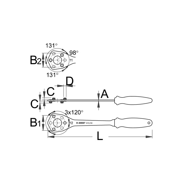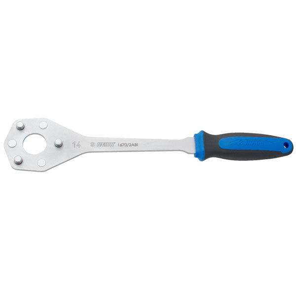 スプロケットを取り外す際、より簡単にフリーホイールを固定するための工具。【11T/12T】L:350D:8.6A:4C:6.4B1:49.8B2:46重量:238g【13T/14T-】L:350D:8.6A:4C:6.4B1:53.1B2:57.7重量:238g